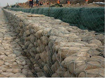 高爾凡石籠網(wǎng),又稱格賓(英文gabions)結構,是由多個石籠按照一定建造方式疊砌而成的工程結構。其基本工作單元為填石的石籠,填石要滿足密度,粒徑和級配,形狀,擋風化性,不腐蝕性等方面的要求。石籠是指能填充石塊或其他填充材料,有一定模數(shù),用作結構單元的金屬網(wǎng)籠,依厚度又分為網(wǎng)箱和網(wǎng)墊。石籠結構具有很多優(yōu)點,如良好的生態(tài)可恢復性,變形性能良好,整體性強,透水性良好,結構長久,工程造價低,制作,運輸,施工方便,易于維護和改造等,可用于公路鐵路邊坡支護,礦山護坡,橋墩加固,海岸防護,河岸河床防護,防波堤,建筑外墻裝飾,單個裝飾石籠結構等。